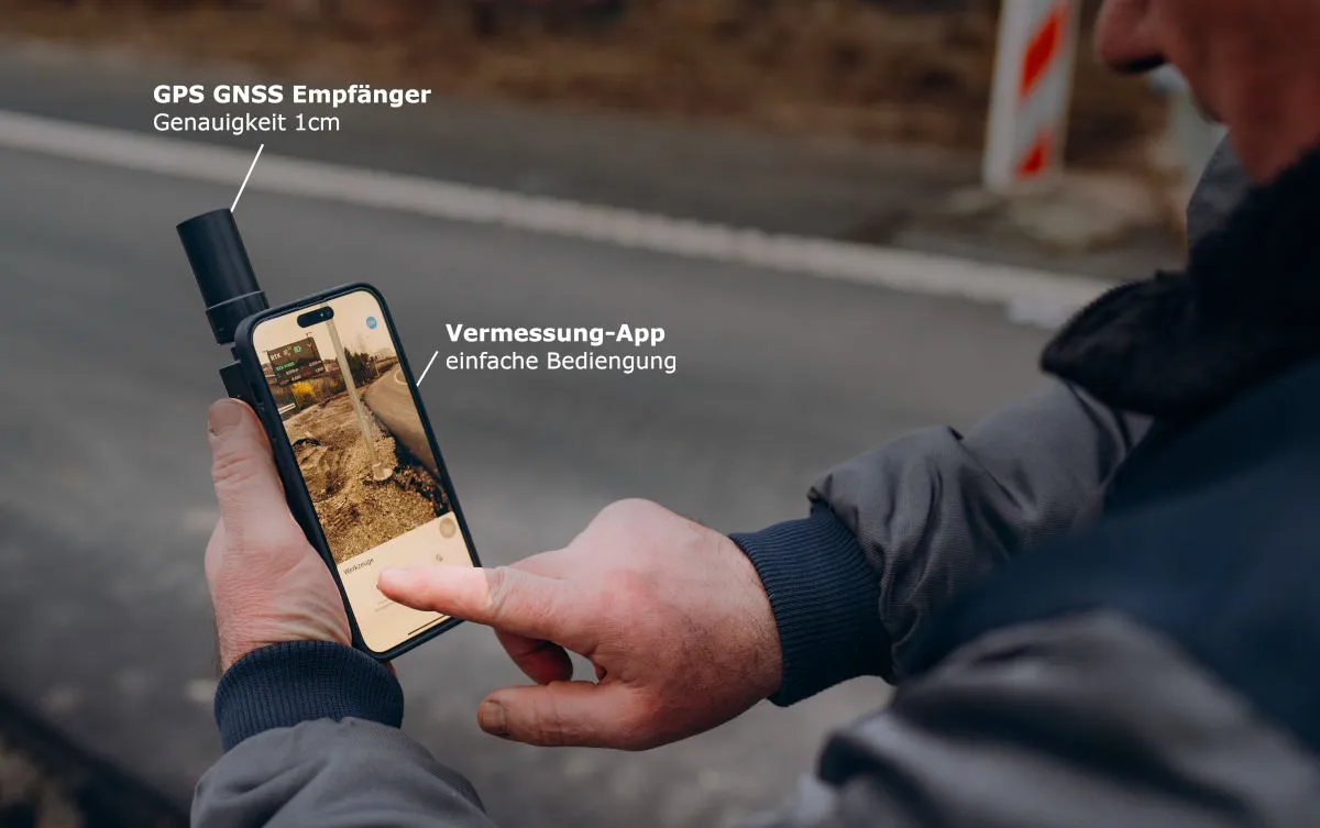 Vermessungen mit Smartphone-Apps ohne GNSS-Empfänger weisen oft eine unzureichende Genauigkeit im Meterbereich auf. Durch den Einsatz von GNSS-GPS-Empfängern wird die Genauigkeit auf die für Bauvermessungen notwendige Zentimetergenauigkeit verbessert.